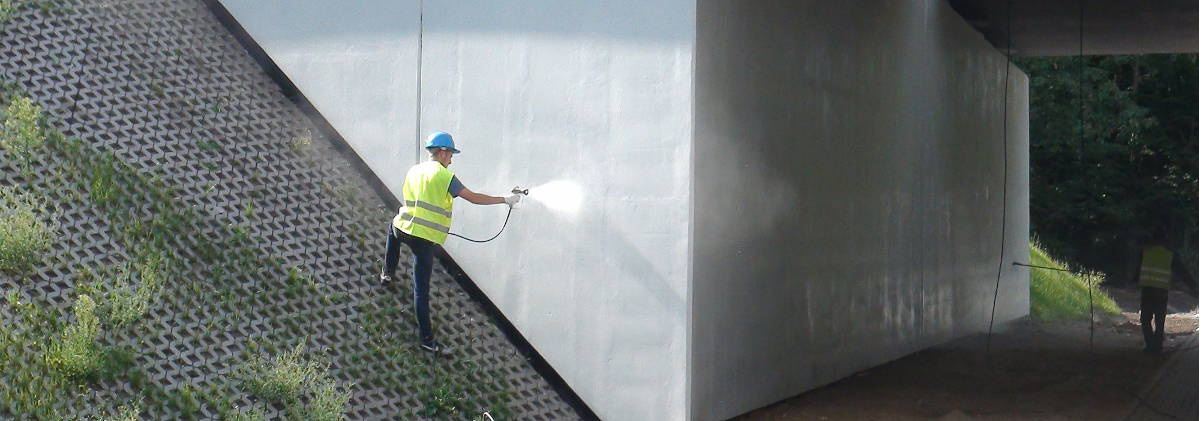 Der Anti-Graffiti-Schutzfilm kann mit warmen Wasser und einem Hochdruckgerät von den Oberflächen abgelöst werden. Der Einsatz von leicht alkalischen Reinigungsmedien erleichtert das Ablösen der Opferschicht.